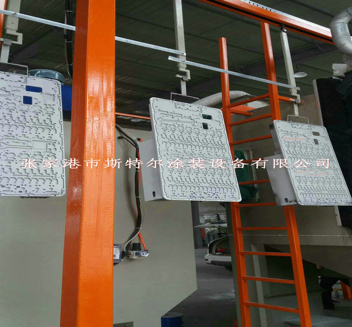 江蘇某企業在我司定制的懸掛鏈自動噴砂機具有以下幾個特點物(wu)品(pin):最(zui)主(zhu)要是魅族5G 基站天線鋁殼板。